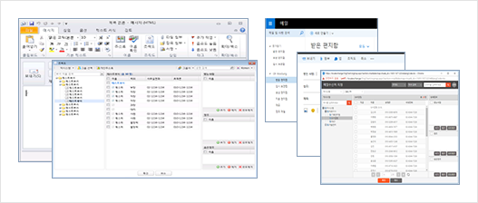 자동 업데이트 기능을 제공하며, OWA는 메일 쓰기 화면을 Customizing 으로 대용량첨부 아이콘을 삽입하여 대용량 파일을 첨부, 발신하는 기능을 제공합니다.